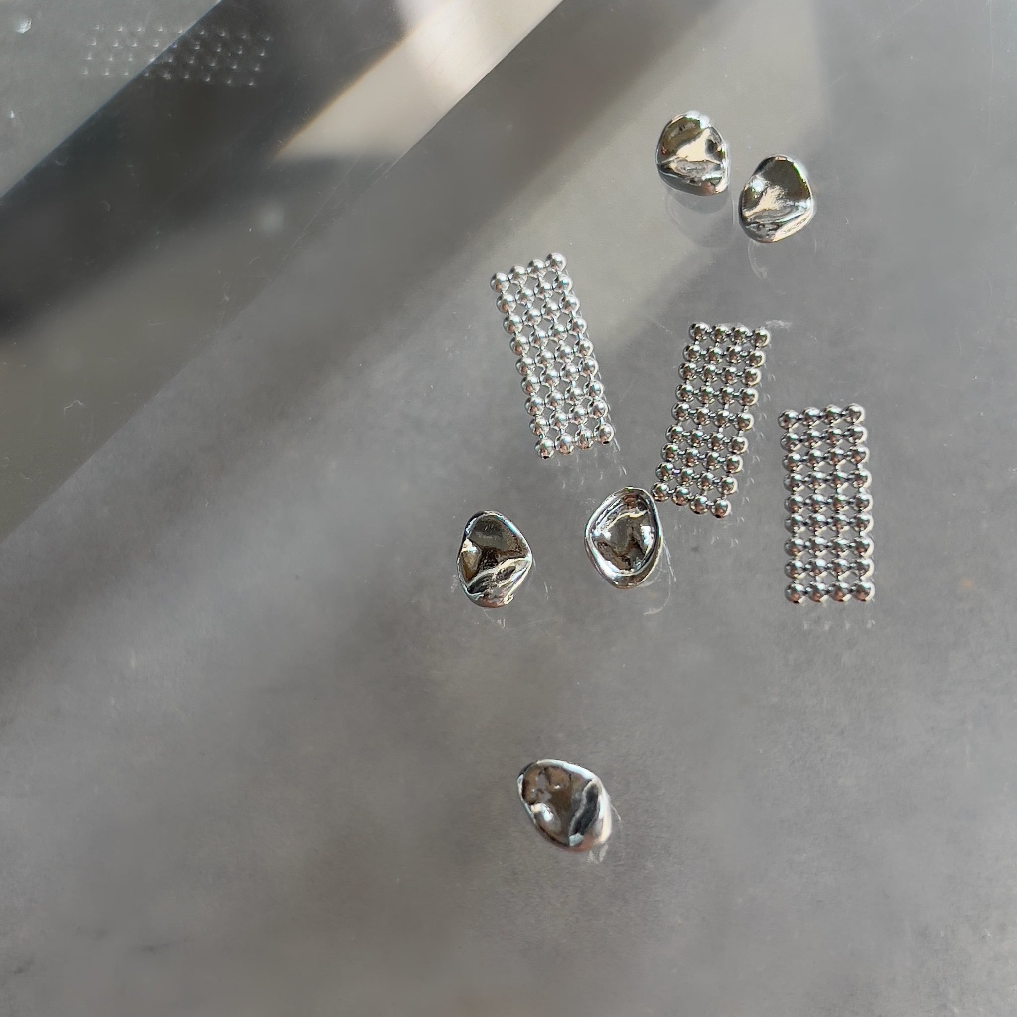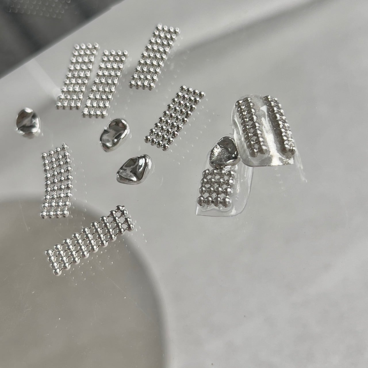 17㎜前後の大ぶりボールチェーンシートが3つと7㎜のシルバーパーツが5個のシルバーパーツミックスです。