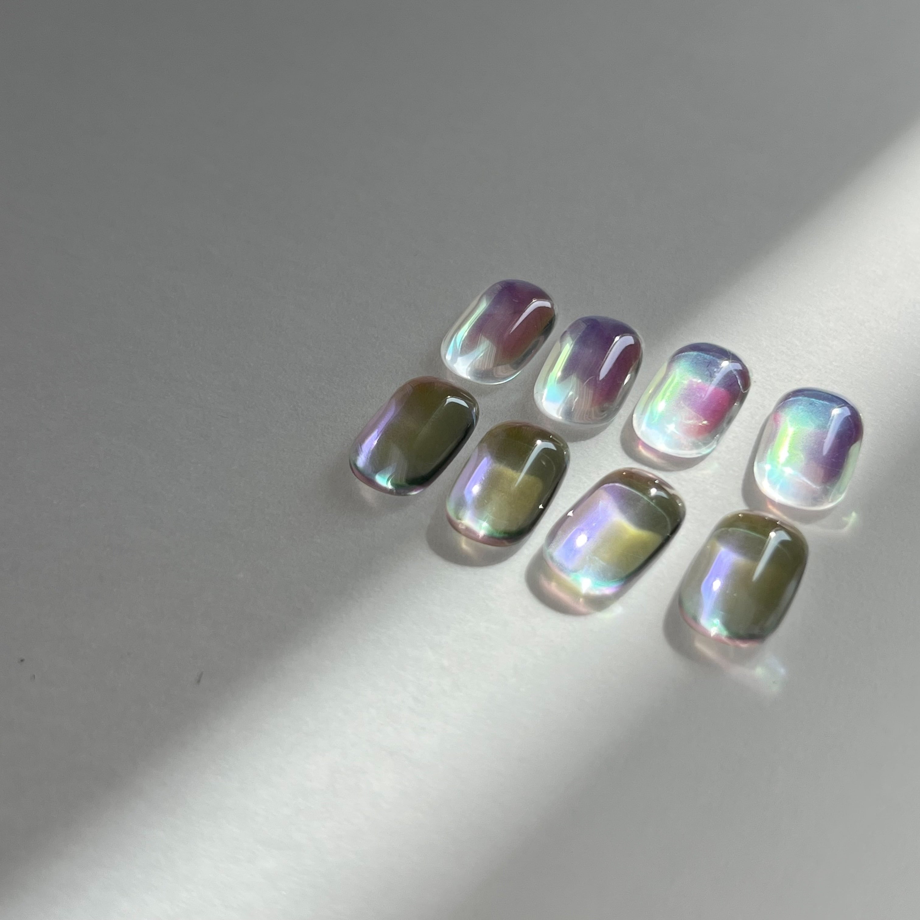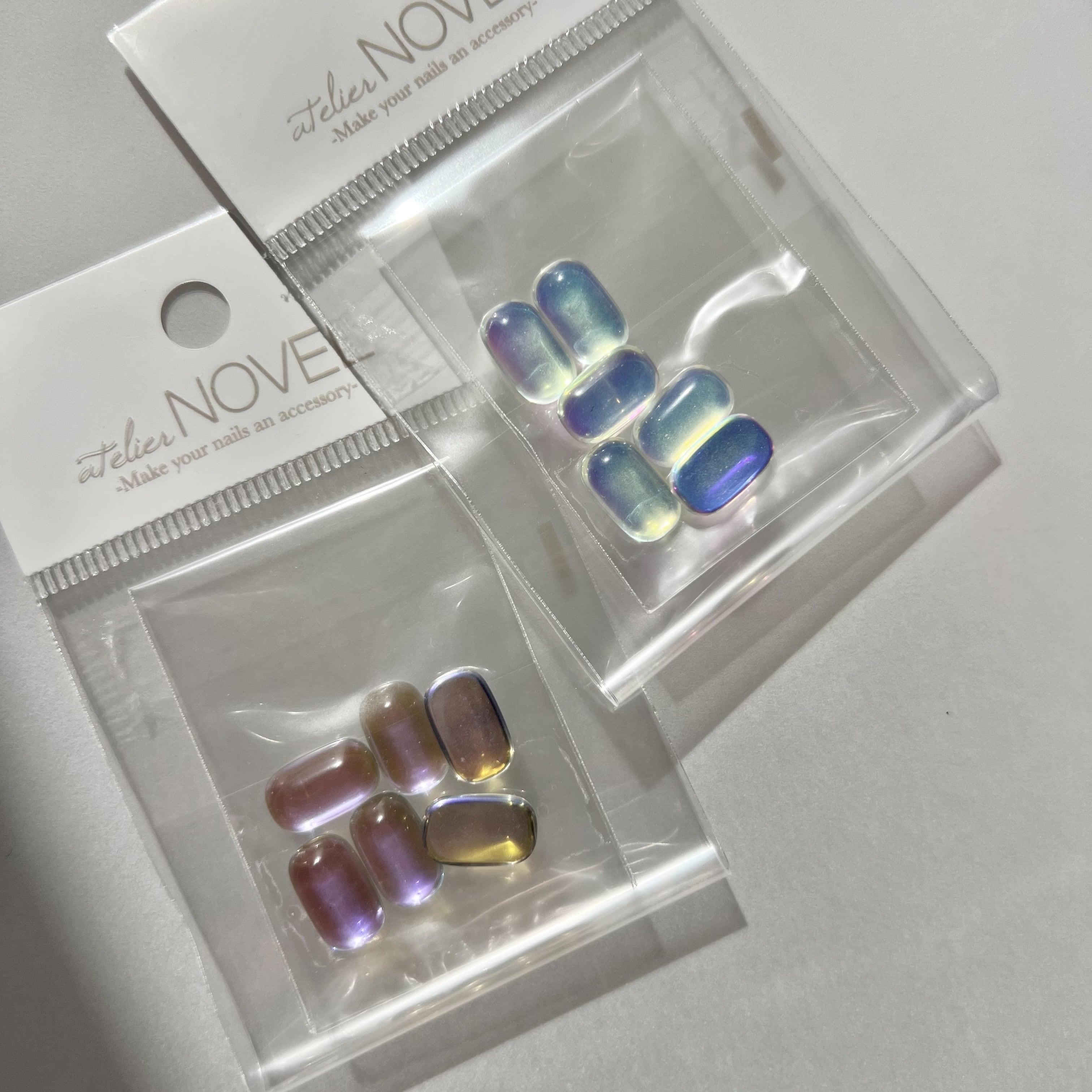 "縦長の13㎜×7㎜のオーロラカボションパーツです。