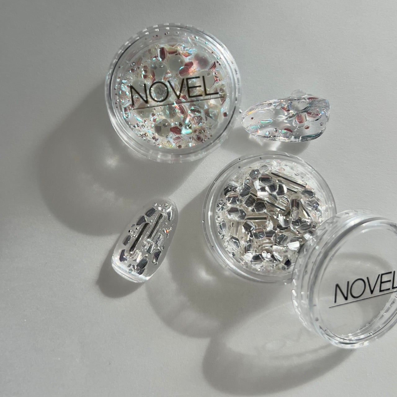 ミックスされたパーツとホロを埋め尽くしとして使用すると、奥行きと輝きがさらに際立ち、華やかでラグジュアリーな印象に仕上がります。"