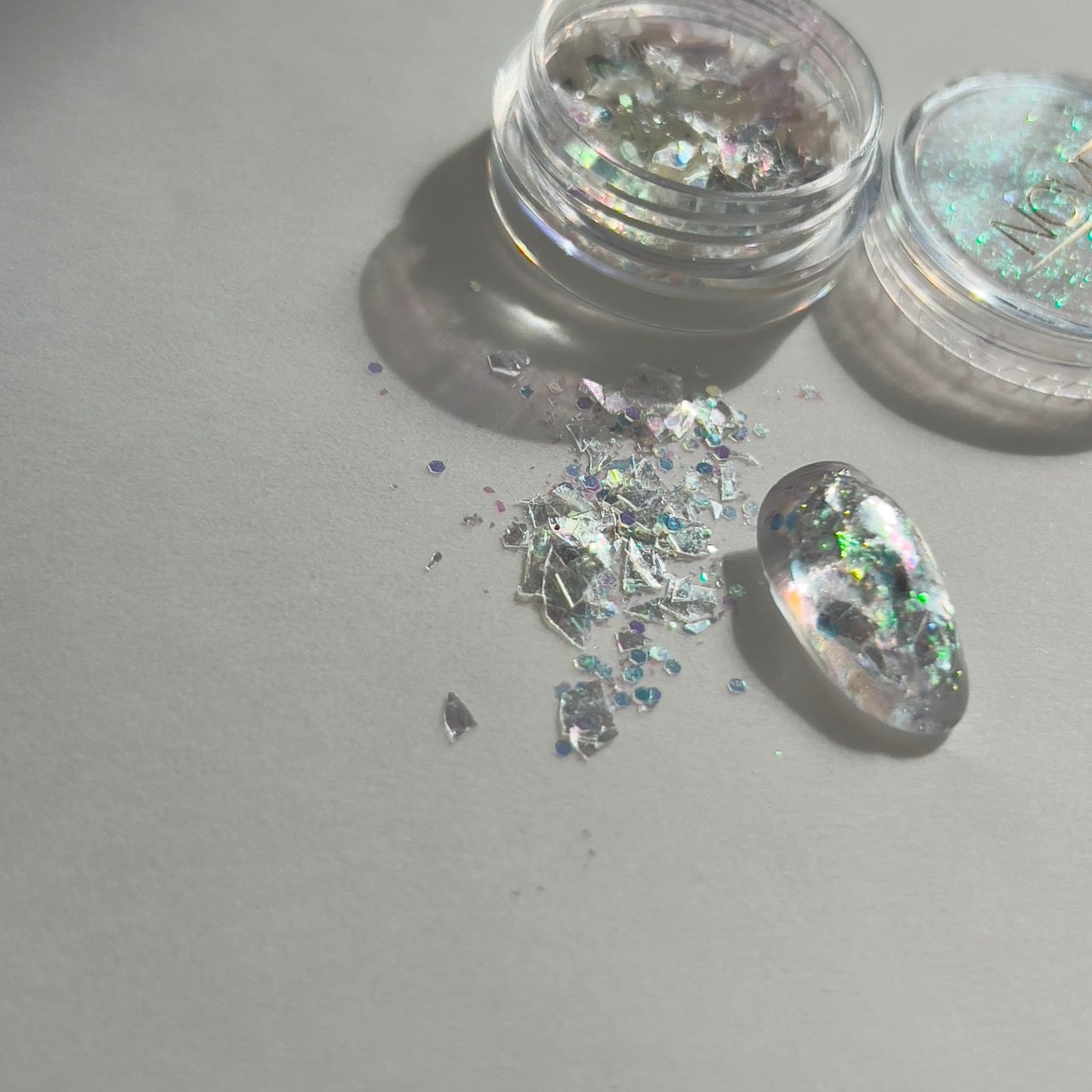 "オーロラフレーク・オーロララメ・クリスタルフレーク・クリスタル乱切りホロを贅沢にミックスしたアイテムです。