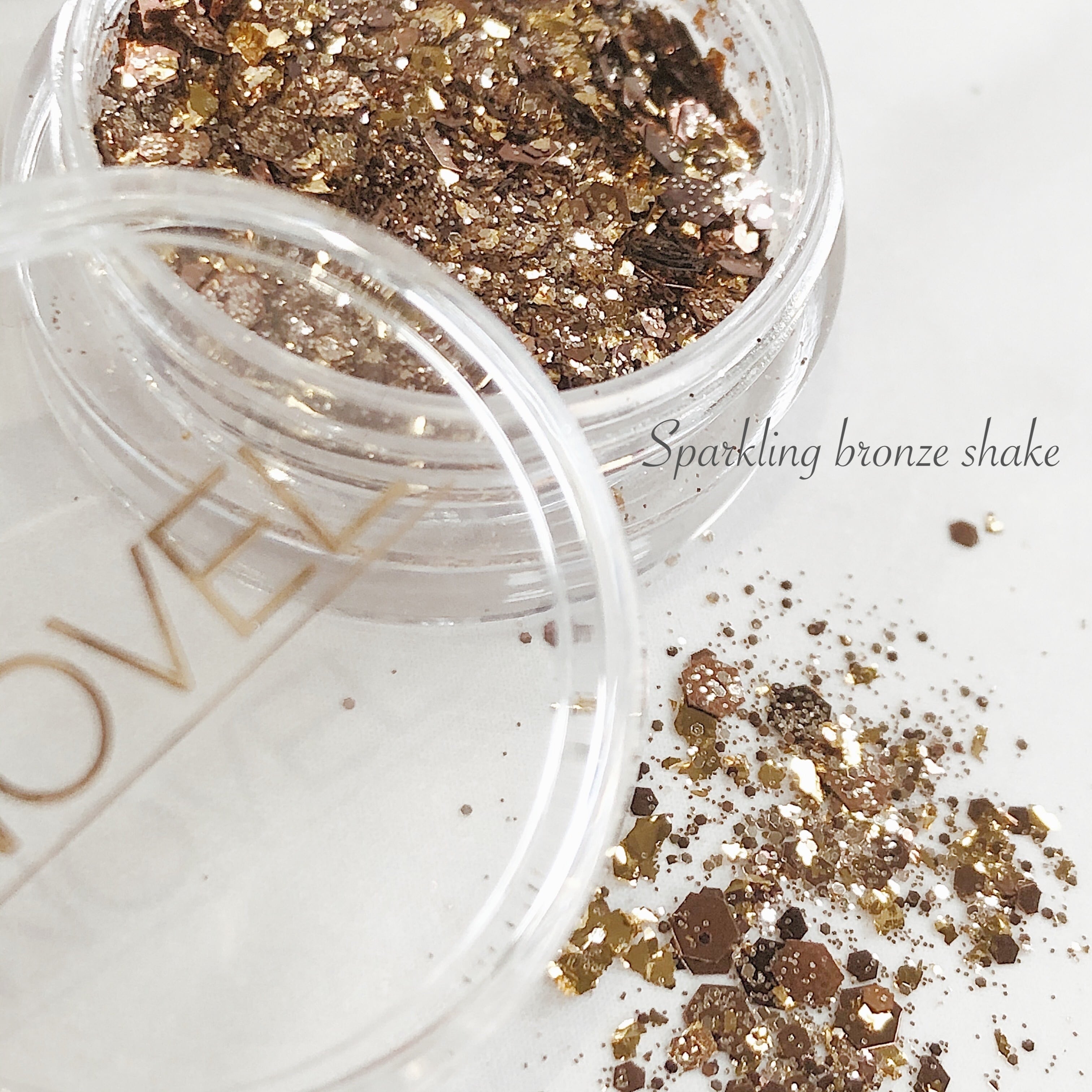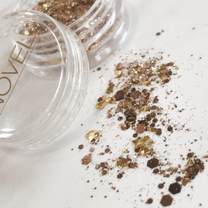 ブロンズのホロやラメ、ゴールドの箔がmixされたグリッターです。