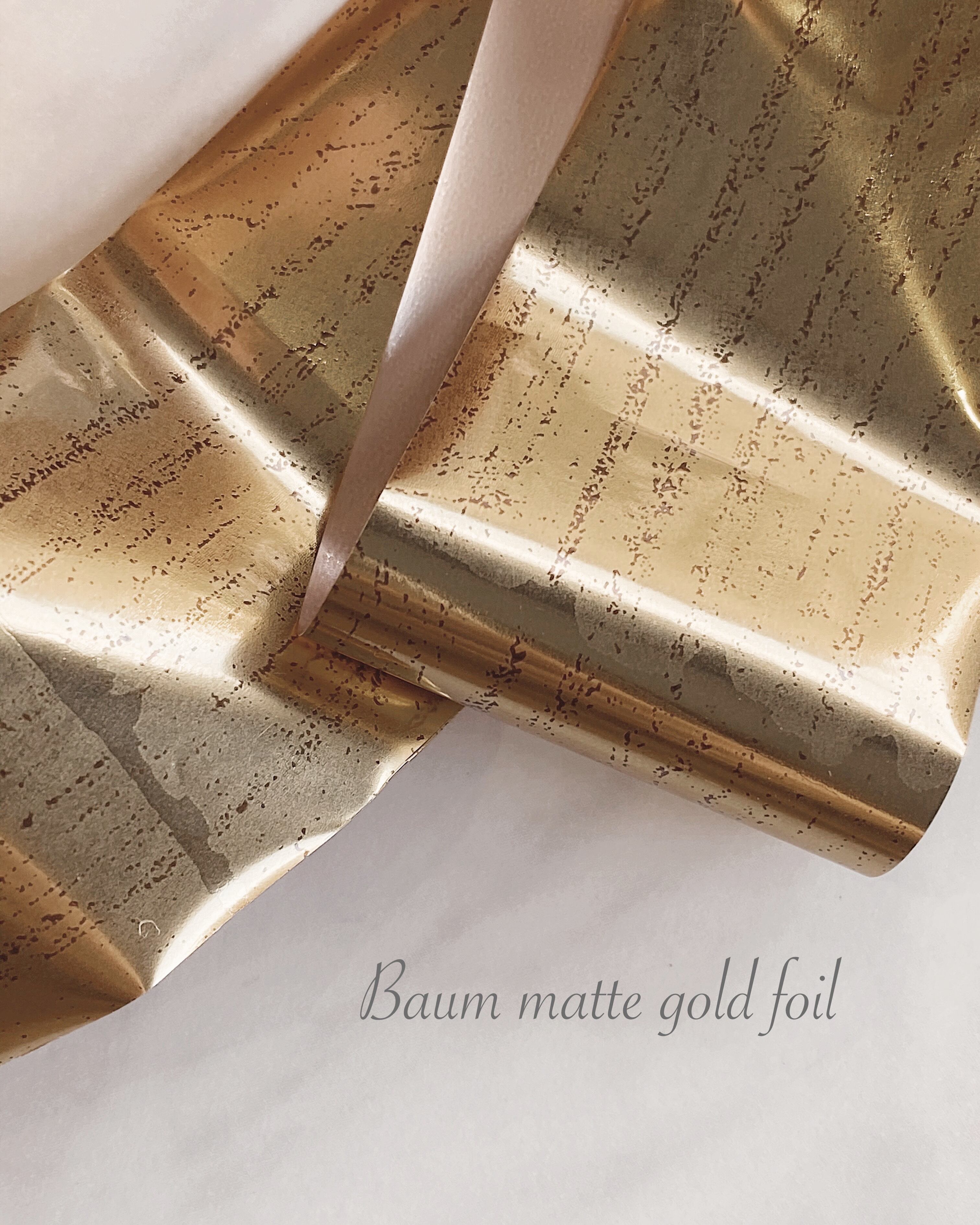 上品で合わせやすいゴールドにアクセントに柄が入ったホイルになります。