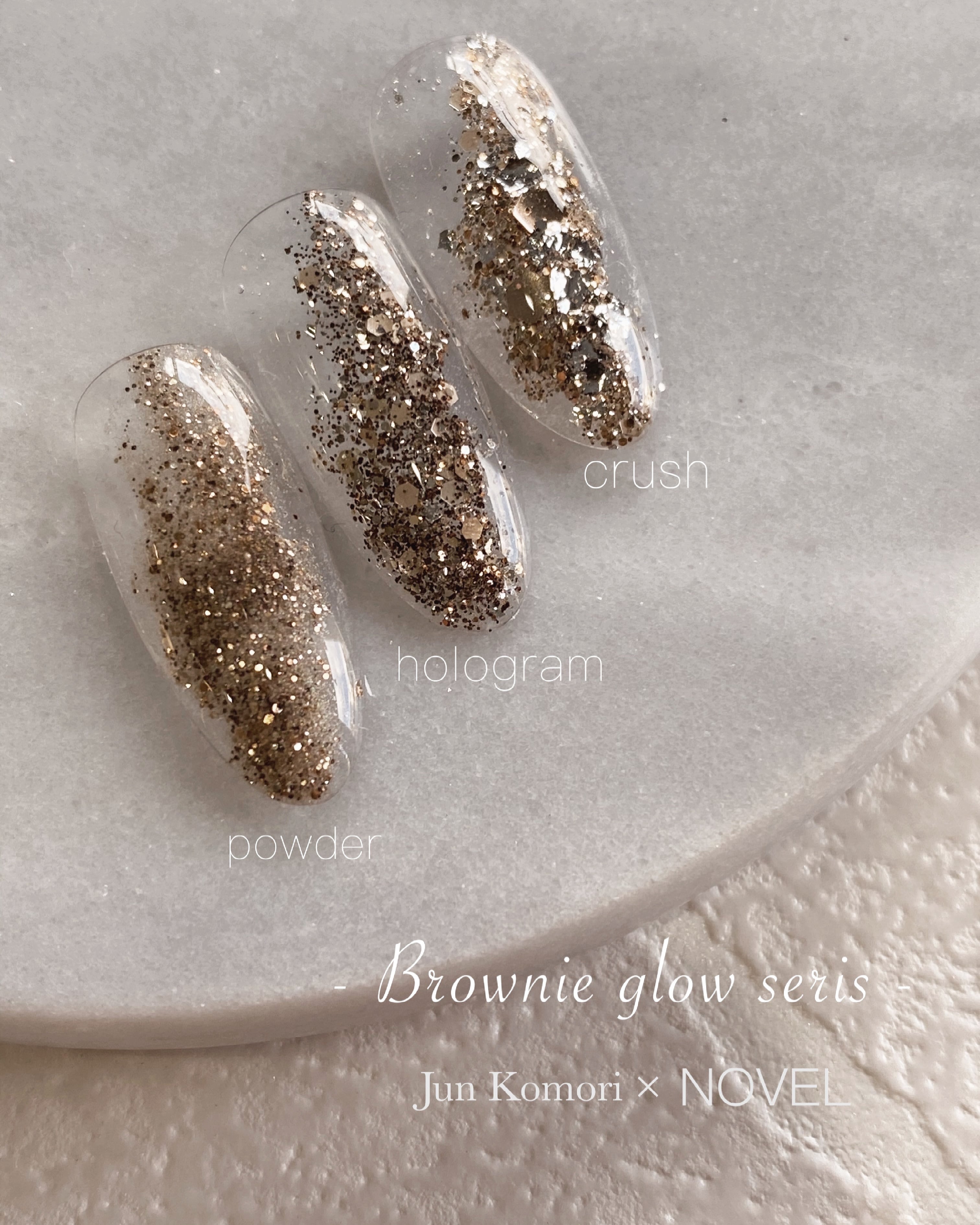 今回はブラウンのグリッターのシリーズを作りたいと言うお言葉を頂き開発を始め、純さんとじっくり考えたこだわりのアイテムです!