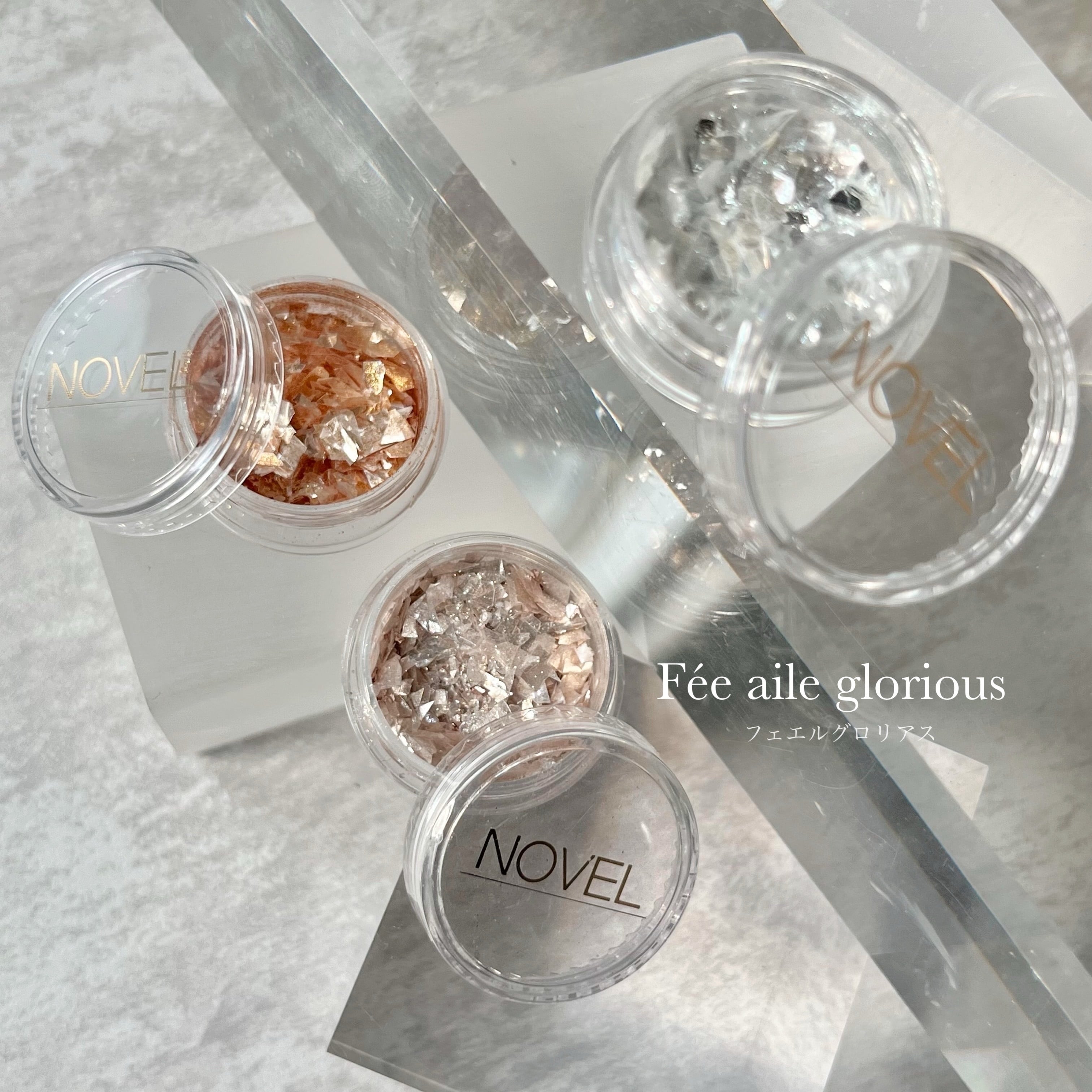 クリスタルフレークや箔やパウダー、細かなオーロラグロリアスなどのmixとなります。